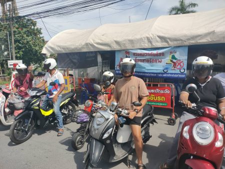 วันที่ 11 เม.ย. 68 เวลา 13.30 น. ภายใต้การอำนวยการของ พ.ต.อ.ธัญญา สังข์ศิลป์ชัย ผกก.สภ.ระโนด พ.ต.ท.ฉลอง ยิ่งคง รอง ผกก.ป.ฯ พ.ต.ต.พศุตม์ รักษ์วงศ์ สวป.ฯ มอบหมาย ร.ต.อ.ประสิทธิชัย ชูพิฤทธิ์ รอง สวป. ฯพร้อมข้าราชการตำรวจจิตอาสา สภ.ระโนด ร่วมอำนวยความสะดวก ขับขี่ปลอดภัย เมืองไทยไร้อุบัติเหตุและรณรงค์ให้ความรู้แจกหมวกนิรภัยให้กับประชาชนที่ไม่สวมหมวกตามนโยบายสำนักงานตำรวจแห่งชาติ อย่างเคร่งครัด หน้า สภ.ระโนด ต.ระโนด อ.ระโนด